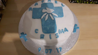 No domingo passado o Rafael recebeu o sacramento da confirmação e encheu-me de orgulho! Eu preparei umas lembranças amorosas e fiz o bolo escolhido pelo Rafael. Convidámos alguns amigos e depois da missa houve churrasco. Tudo muito simples mas cheio de amor e alegria.